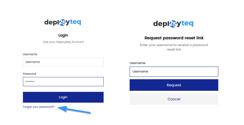 - Noticed anything different when logging in? One of the top-voted requests in the Deployteq Community is here: you can now reset your own password! Previously, this had to be done by a portal admin or someone with sufficient admin rights. When you click the 'Forgot your password?' link on the login screen, simply enter your username. You’ll then receive an email with a reset link that’s valid for 15 minutes.